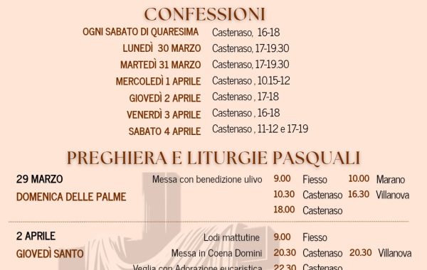 Benvenuti Avvisi settimana 8 – 15 marzo 2026 resta aggiornato sugli ultimi avvisi Appuntamenti 13Marzo ore 20:45 Castenaso, Zona Pastorale Lettura del Vangelo di Giovanni 14Marzo ore 10:30 Castenaso, Zona Pastorale Camminiamo con Gesù verso la Pasqua 20Marzo ore 20:45 Castenaso, Zona Pastorale “Mi ami?” 22Marzo ore 09:00 Fiesso, Zona Pastorale Festa di San Giuseppe Tutti gli Appuntamenti In evidenza: Esercizi Spirituali 2026 QUARESIMA 2026 Benedizioni Pasquali 2026 Calendario della Zona Pastorale 2025-2026 Come fare per Iscriviti alla nostra newsletter Ricevi aggiornamenti sugli eventi della nostra comunità Scopri come I nostri canali e link