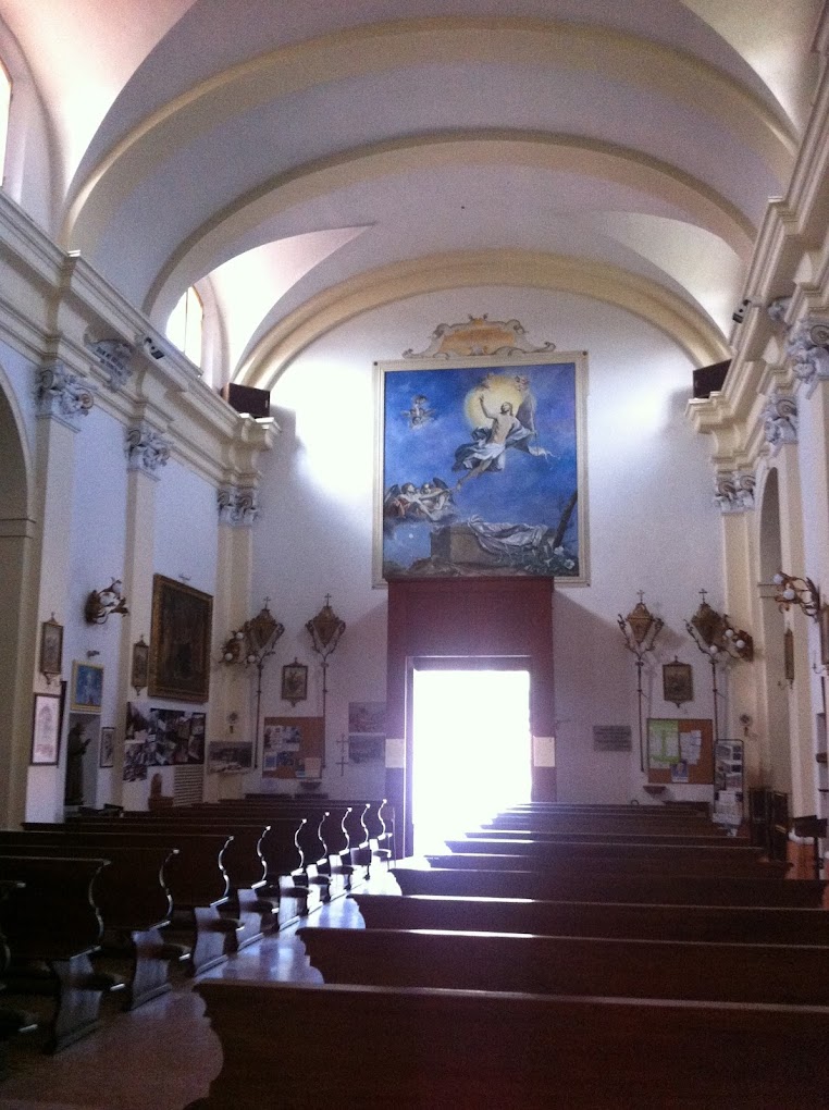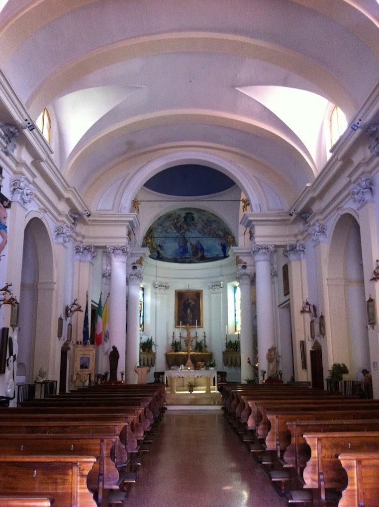 Durante la Seconda Guerra Mondiale, il campanile fu distrutto dai tedeschi nel 1945, causando danni significativi anche alla chiesa, poi ricostruita e riaperta nel 1949. All’interno, vi sono diverse cappelle: quella dei Santi Sebastiano e Rocco, con un quadro attribuito alla scuola di Francesco Albani; la Cappella di San Giuseppe, legata alla famiglia Bajesi; e la Cappella della Beata Vergine del Rosario, con una statua policroma e tele attribuite a Donato Creti.