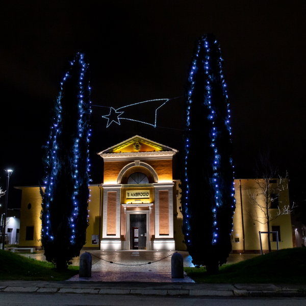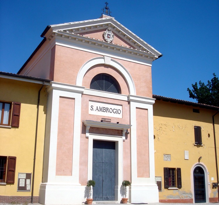 Secondo la leggenda, Sant’Ambrogio, nel tempo in cui era a Bologna, avrebbe fatto una sosta presso l’oratorio di Sant’Anna, e da qui deriverebbe l’intitolazione a lui della chiesa parrocchiale di Villanova.