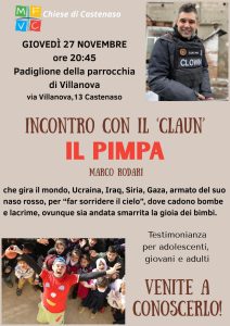 Villanova, Zona Pastorale 3 Novembre 2025 Incontro con il “Cloun” Il Pimpa (Marco Rodari) giovedì 27 Novembre Descrizione: Inizio: 27/11/2025 20:45 Fine: 27/11/2025 22:45 Categorie: Villanova, Zona Pastorale
